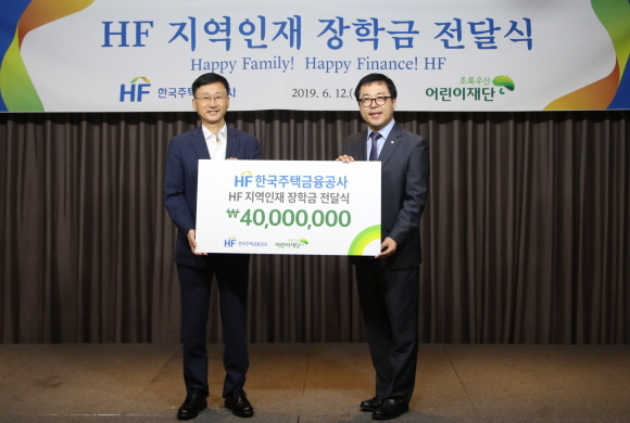 한국주택금융공사(HF)가 지난 12일 부산지역 인재 육성을 위해 초록우산 어린이재단 부산지역본부에 ‘HF 지역인재 장학금’ 4000만원을 전달했다고 13일 밝혔다.
