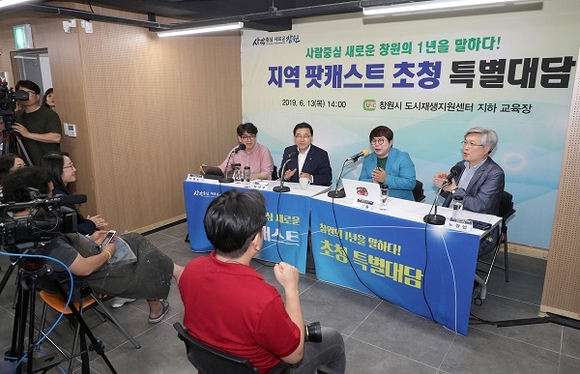 경남 창원시는 13일 마산합포구 창동에 위치한 창원시도시재생센터에서 '민선7기 1년을 말하다! 지역 팟캐스트 초청 특별대담'을 개최했다.