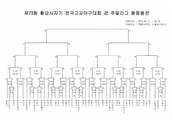올해 고교야구 주말리그 전, 후반기 왕중왕전인 황금사자기와 청룡기 출전권 획득 기준이 바뀌었다. 권역별로 양 대회 홀수 순위, 짝수 순위로 나눠 출전 자격을 균등 부여했다. 단 각 권역별 1위는 양 대회 모두 출전할 수 있는 자격을 갖는다.
