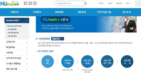 메인 섹션인 ‘시민 경영 제안’은 대표적인 시민참여 시스템이다. 시민이 도시철도 경영에 대한 제안을 자유롭게 올릴 수 있으며 50명 이상의 공감을 받은 제안은 시민을 대상으로 토론, 투표 단계에 부쳐진다.