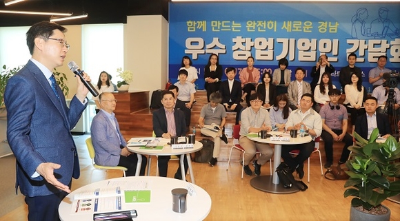 김경수 경남도지사가 17일 경남창조경제혁신센터에서 도내 우수 창업기업인과 간담회를 가졌다.