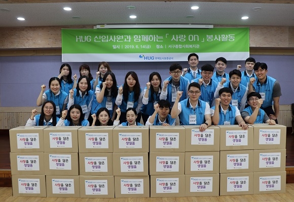 주택도시보증공사(HUG)는 지난 14일 부산 서구종합사회복지관에서 올해 신입사원 34명이 ‘사랑 ON’ 봉사활동을 전개해 지역 소외계층에 나눔을 실천했다고 18일 밝혔다.