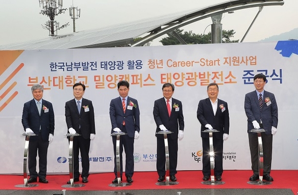 한국남부발전과 한국에너지재단은 18일 부산대학교 밀양캠퍼스에서 '태양광 활용 청년 Career-Start 지원사업' 태양광발전소 준공식을 가졌다.