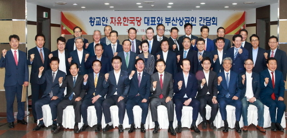 간담회를 연 허용도 부산상의 회장은 “대내외 경제여건 악화로 지역의 많은 기업이 어려움을 겪는 만큼 기업 규제 혁파와 노동시장 유연성 확대를 통해 기업이 활력을 되찾을 수 있도록 정치권의 입법 지원이 필요하다”고 황교안 당대표에 전했다.