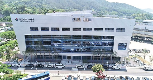 양산시청 맞은편인 다방동 525-7번지 일원에 들어선 양산비즈니스센터는 지하 2층~지상 5층(연면적 9322㎡) 규모로 280억원이 투입된 시설로 국제회의가 가능한 500석 규모의 컨벤션홀과 상설전시장, 세미나실을 갖췄다.