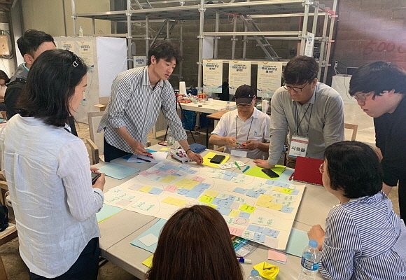 부산창조경제혁신센터가 영도구 내 폐공장을 개조한 복합문화공간 ‘끄티’에서 ‘지역 문제 해결 아이디어 발굴 해커톤’을 연 가운데 참여자들이 문제 해결 방안을 찾기 위해 고심하고 있다. 부산창조경제혁신센터는 지난 14~16일 지역민이 직접 참여하는 지역 문제 해결책 발굴 해커톤을 열고 도출된 아이디어를 추후 IoT 실증지원사업과 연계해 사업화를 지원할 계획이다. (사진=부산창조경제혁신센터 제공)