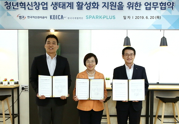 한국자산관리공사(캠코)와 한국국제협력단(코이카), 스파크플러스가 20일 오후 3시 스파크플러스 선릉점에서 ‘청년 혁신창업 생태계 활성화 지원 업무협약’을 체결했다고 밝혔다.