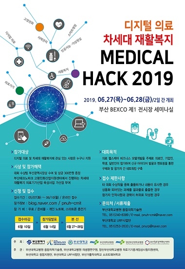MEDICAL HACK 2019 대회는 의료인, 의료기관 종사자와 아이디어를 가지고 있는 학생, 일반인, 예비 창업자 등이 팀을 이루어 헬스케어 비즈니스모델개발 ‘해커톤(Hackathon)'을 진행하는 대회다. 신규 비즈니스 모델을 개발하고 참가자 간 네트워킹을 구축하기 위해 부산대학교병원과 부산의 관련기관들이 공동으로 매년 진행하고 있다. '해커톤(Hackathon)'은 난이도 높은 프로그래밍을 의미하는 해킹(Hacking)과 마라톤(Marathon)의 합성어로 일정한 시간과 장소에서 각자의 아이디어를 도출하고 이를 토대로 앱, 웹 서비스 또는 비즈니스 모델을 완성하는 것을 말한다.