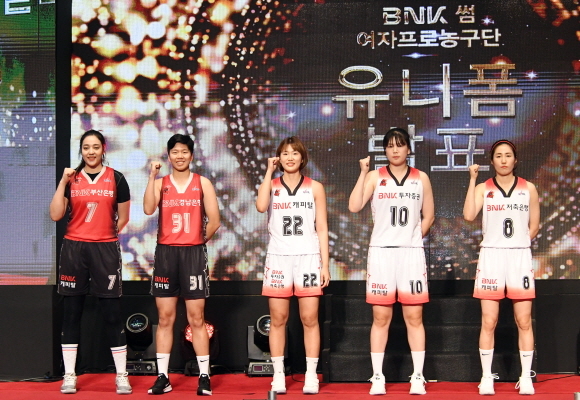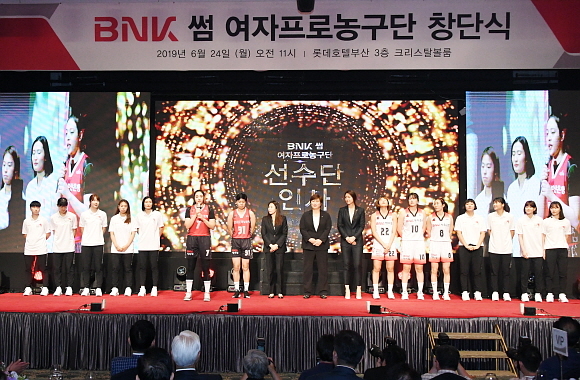 부산을 연고로 한 첫 번째 여자프로농구단 ‘BNK 썸 여자프로농구단’이 24일 부산 롯데호텔 크리스탈볼룸에서 공식 창단식을 열었다.