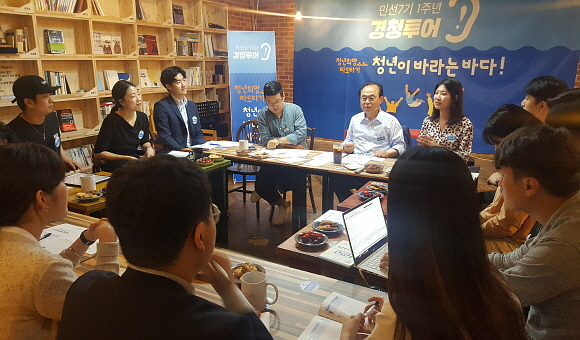 오거돈 부산시장이 민선 7기 취임 1주년을 앞두고 시민들의 진솔한 목소리를 듣기 위한 ‘경청투어’에 나선 가운데 25일 경청투어 두 번째로 부산 청년들의 의견을 듣는 시간을 보냈다.