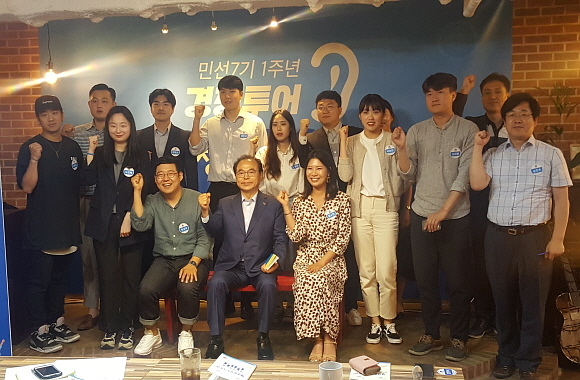 25일 오후 수영구 민락동의 한 청년문화공간에서 마련된 자리에서 대학생, 취업준비생, 직장인, 청년창업가와 같은 다양한 분야의 청년들이 참석해 저마다의 고민과 바람 등을 오 시장에 전했다.