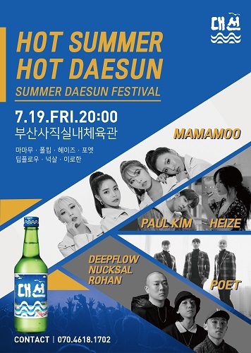 대선주조는 7월 19일 금요일 오후 8시 부산 사직실내체육관에서 ‘제2회 HOT 썸머, HOT 대선 SUMMER DAESUN FESTIVAL’을 개최한다고 26일 밝혔다.