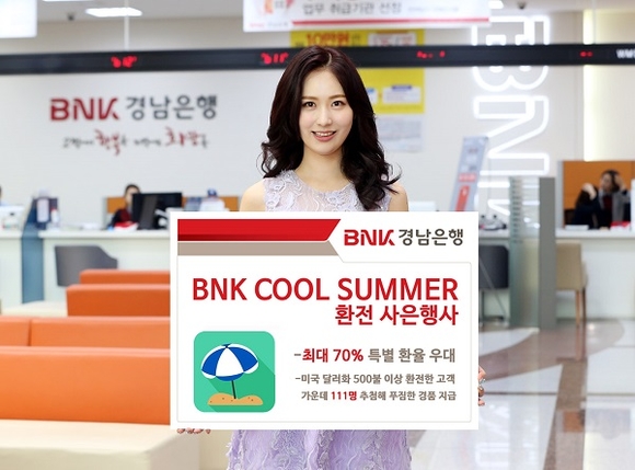 BNK경남은행은 여름 휴가 시즌을 맞아 오는 7월 1일부터 8월 말까지 'BNK COOL SUMMER 환전 사은행사'를 진행한다고 27일 밝혔다.