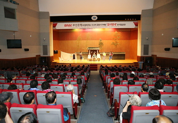 BNK부산은행이 27일 오후 부경대학교 대학극장에서 시니어 금융 소비자 500여명을 초청해 금융사기 예방 뮤지컬 ‘금사방네’를 공연했다고 밝혔다.