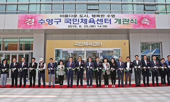 부산 수영구는 25일 구민의 건강증진과 생활체육 활성화에 앞장서고 스포츠·문화·교육의 중심지로 거듭날 수영구 스포츠 문화타운의 개관식을 갖고 본격적인 운영에 들어갔다. (사진=수영구 제공)