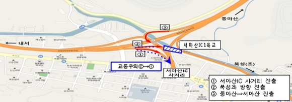 본부는 공사 시행으로 서마산IC 진출구간 양방향의 교통 혼잡이 우려됨에 따라 교통방송, 도로전광표지판(VMS) 등을 통해 교통상황 및 우회도로를 미리 확인하고 운행할 것을 당부했다.