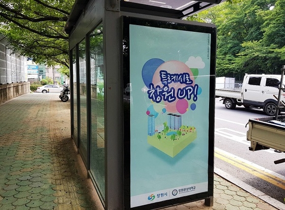 시는 창원문성대학교와 협업해 버스승강장의 오래되거나 비어있던 벽면 공간에 학생들의 디자인 재능기부를 받아 공공디자인 수준을 향상시켰다. 주제는 △창원특례시 △창원스마트산단 △미세먼지대처방안 △관광지 홍보(주남저수지) 등이다.
