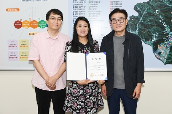 경남 양산시는 1일 시장 집무실에서 양산시 첫 다문화가족 공무원의 임명장 수여식을 가졌다.
