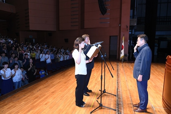 지난 5월 13일 부서장이 참여한 '갑질 근절 서약식'이 조직 내부 갑질 문제에 대해 경종을 울렸다면, 이번 양산시 전체 공무원이 참여한 '갑질 근절 서약식'은 공무원의 권한 행사과정에서 발생될 수 있는 다양한 형태의 갑질에 대해 직원 스스로 점검하고 개선하기 위해 실시됐다.