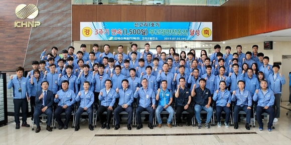 한국수력원자력 고리원자력본부는 3일 오전 3발전소 사옥에서 ‘신고리1호기 3주기 연속 무고장 안전운전 달성 기념행사’를 개최했다.