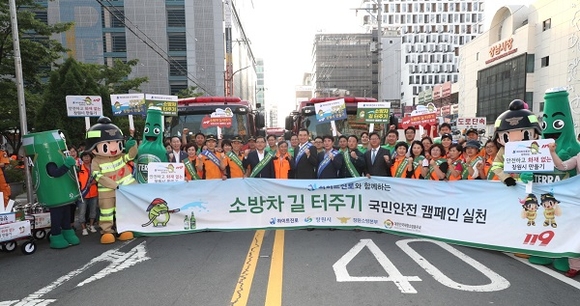 이날 허성무 창원시장, 이찬호 시의장을 비롯해 김인규 하이트진로 대표이사 등 관계자와 의용소방대, 소방공무원, 시민, 학생 530여 명이 참석했다.