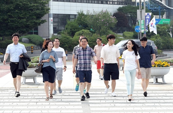 허성무 창원시장을 비롯한 직원들이 반바지를 입고 출근하는 색다른 모습을 선보였기 때문이다.