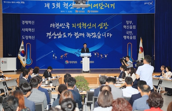 경남도가 3일 도청 대회의실에서 지방자치단체로서는 최초로 '제3회 혁신현장 이어달리기'를 개최했다.