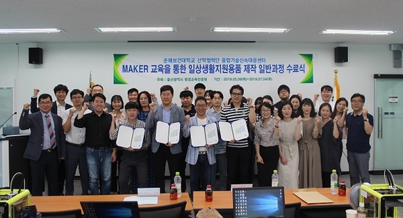 춘해보건대학교 융합기술신속대응(URI)센터는 4일 ‘MAKER 교육을 통한 일상생활 지원 용품 제작 일반과정’ 수료식을 진행했다.