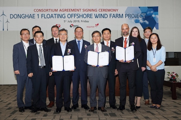 한국동서발전은 5일 오후 2시 한국석유공사 본사에서 한국석유공사, 에퀴노르와 ‘동해1 부유식 해상풍력발전사업 추진을 위한 컨소시엄 협약’을 체결했다고 밝혔다.