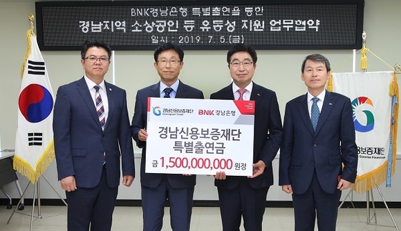 BNK경남은행과 경남신용보증재단은 5일 경남신보 본점에서 '경남지역 소상공인 등 유동성 지원 업무협약'을 체결했다.