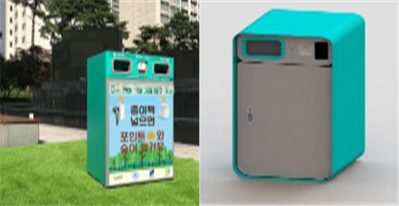 해당 분리배출함은 종이팩, 캔, 페트 등 재활용품에 부착된 바코드를 인식해 배출자 스마트폰 앱으로 포인트, 쿠폰 등의 보상을 지급해주는 첨단 분리수거함이다.