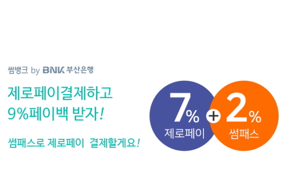 썸뱅크 이용 고객은 최대 9%(부산시 7% + 부산은행 2%), 1인당 월 최대 3만원을 페이백 받을 수 있다.