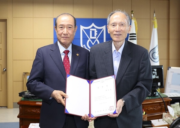 경남대학교는 9일 총장실에서 삼우금속공업㈜ 방효철 회장에게 경영대학 경영학부 석좌교수 임명장을 전달했다.