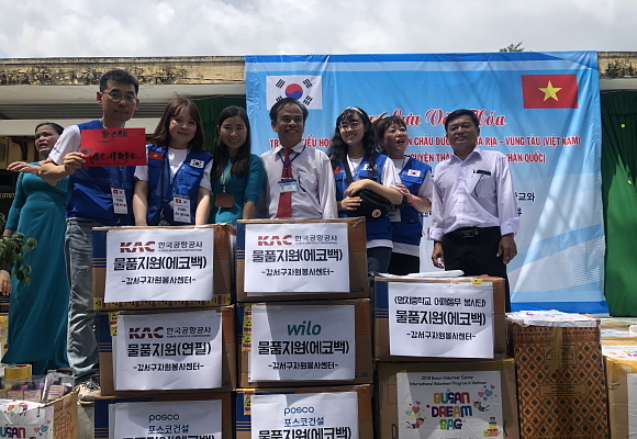 한국공항공사 부산지역본부와 강서구자원봉사센터가 베트남 현지 초등학교에 학생들에게 나눠 줄 에코백 250개를 제작해 학용품 100점 등과 함께 후원 물품을 전달했다고 11일 밝혔다.