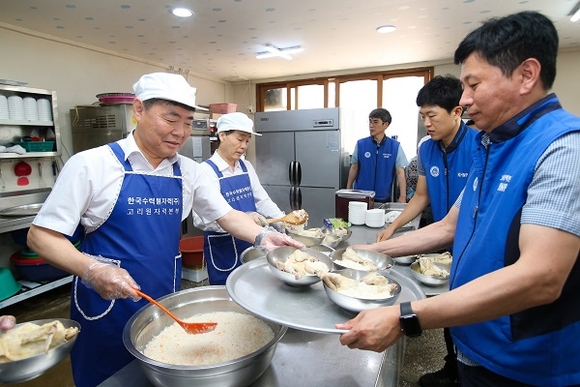 이날 행사는 부산시 기장군 소재 월내무료급식소와 일광무료급식소에서 동시에 진행됐다. 이인호 고리원자력본부장과 본부직원들로 구성된 고리봉사대 약 20여 명은 삼계탕과 옥수수를 준비해 300여 명의 원전 주변지역 어르신들에게 무료로 제공했다.