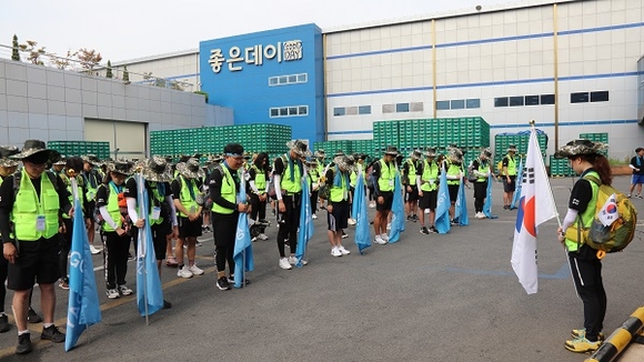 ‘좋은데이와 함께하는 대학생 국토대장정’은 지난 5월부터 무학 공식 SNS와 홈페이지를 통해 참가자를 신청받았다. 이후 면접을 통해 지역의 역사를 배우고 활동적인 대외활동을 하고자 하는 부·울·경 지역 대학생 100여 명을 선발하게 됐다.
