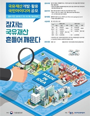 기획재정부가 주최하고 캠코가 주관하는 이번 공모전은 국유재산의 효율적 개발, 활용을 위한 아이디어를 찾고 이를 국유재산 활용 방안에 반영해 국유재산 가치를 제고하기 위해 마련됐다.
