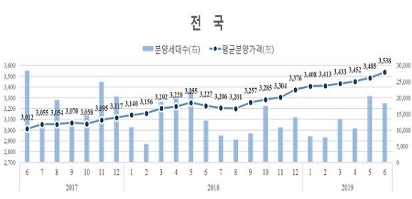 주택도시보증공사(HUG)가 전국 민간아파트의 분양보증 사업장 정보를 집계 분석한 ‘2019년 6월 말 기준 민간아파트 분양가격 동향’ 결과를 15일 발표했다.