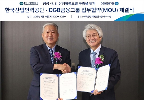 DGB금융지주와 한국산업인력공단은 16일 대구 칠성동 DGB대구은행 제2본점에서 국가직무능력표준(National Competency Standards, NCS)의 중소·중견기업 활용확대와 성과창출 확산을 위한 업무협약을 체결했다.