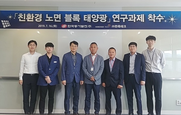 한국동서발전은 16일 본사(울산 중구 소재)에서 ㈜한축테크와 공동으로 수행하는 ‘친환경 소재 활용 노면 블록형 태양광 모듈개발’ 착수회의를 가졌다고 밝혔다.