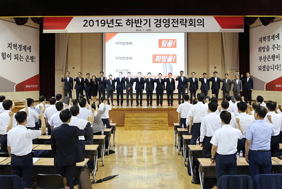 BNK금융그룹 부산은행이 18일 부산은행 기장연수원에서 경영진, 부실점장 등 300여명이 참석한 가운데 ‘2019 하반기 경영전략회의’를 열었다고 밝혔다.