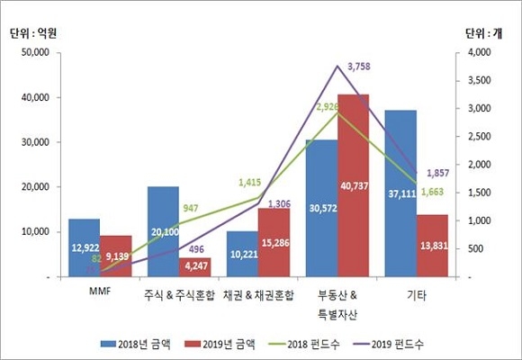 펀드 유형별로는 MMF(머니마켓펀드, 90일 미만 단기금융펀드), 주식형 펀드의 이익배당금은 감소했으나 채권형, 대체투자형(부동산, 특별자산) 펀드의 이익배당금은 늘어났다.