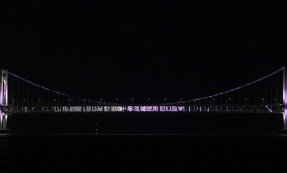 메시지는 내달 2일부터 6일까지 오후 8~9시에 20분씩 매일 2회에 걸쳐 시민의 마음을 담은 메시지를 광안대교에 띄우게 된다.