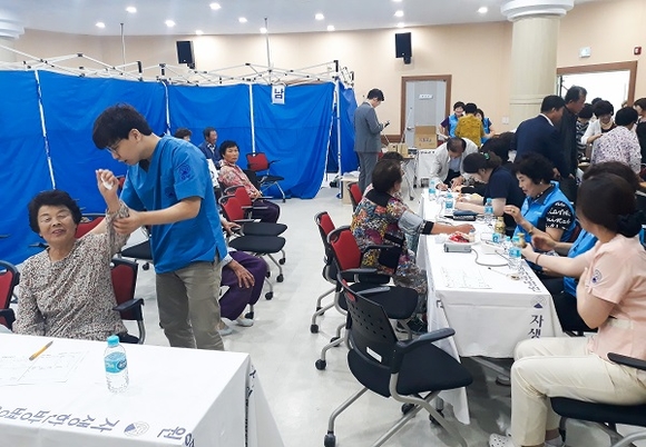이날 현장에서는 창원자생한방병원 의료진이 한방진료와 침 시술, 약제처방 등 개인별 맞춤 의료서비스를 제공해 농사일로 지쳐가는 농업인들로부터 큰 호응을 얻었으며 행복한 노후준비를 위한 장수사진 촬영도 함께 이루어져 어르신들께 큰 기쁨을 선사했다.