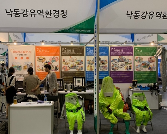 낙동강유역환경청은 지난 18일부터 이틀간 부산 벡스코에서 열린 '2019년 국제 화학물질·위험물 안전관리 산업전시회'에 참가해 화학사고 시 국민행동요령 안내, 화학물질 측정·탐지기기 시연, 개인보호장비 착용 등 부산·울산·경남 모든 시민이 직접 참여할 수 있는 체험교실을 운영했다. (사진=낙동강청 제공)