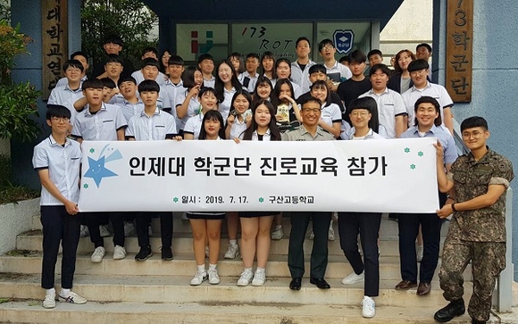 인제대학교 173 학군단은 17일 문무관에서 구산고등학교 1, 2학년생 37명을 초청해 ‘육군장교 진로체험 프로그램’을 진행했다.