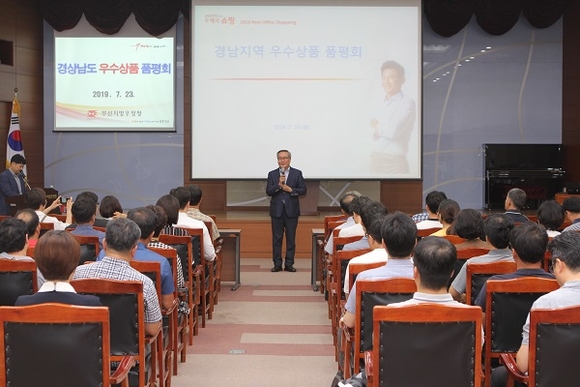 부산지방우정청은 경남지역 농·수산 및 지역 우수상품 생산자의 소득 증대와 온라인 판로개척을 위한 ‘경상남도 우수상품 품평회’를 부산지방우정청 홍보관 및 대회의실에서 23일 오후 2시에 개최했다.