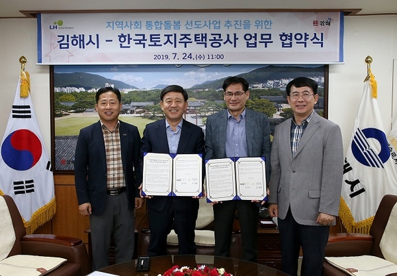 경남 김해시는 24일 시청에서 한국토지주택공사(LH) 경남지역본부와 노인분야 지역사회 통합돌봄 선도사업(커뮤니티케어) 추진을 위한 업무협약을 체결했다.