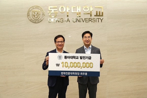 동아대학교는 최우용 법학전문대학원장이 발전기금 1,000만 원을 기부했다고 25일 밝혔다.