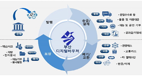 부산디지털바우처는 부산 소재 가맹점에서 사용할 수 있는 선불 전자지급수단으로 금융, 관광, 물류, 데이터거래 등 다양한 분야에서 활용이 가능하다.